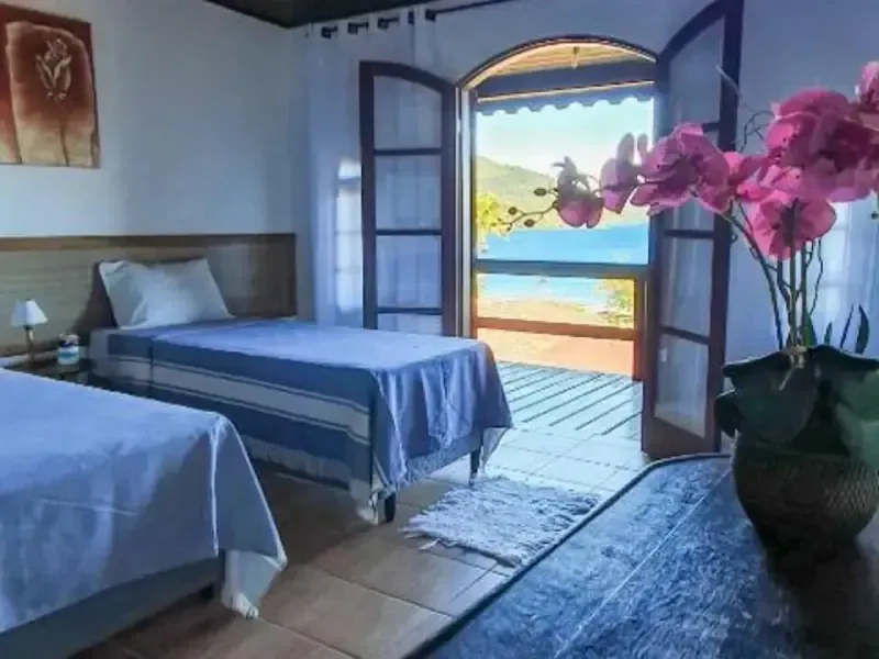 Com varanda privativa e vista deslumbrante para o mar, essa suíte é ideal para casais ou pequenas famílias que desejam viver dias de descanso e conexão com a natureza.