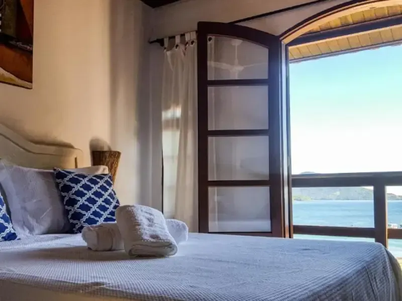 Ampla e aconchegante, essa suíte é ideal para famílias que buscam descanso com comodidade e uma paisagem inesquecível. Com varanda e vista para o mar, é o cenário perfeito para viver momentos tranquilos e cheios de conexão.